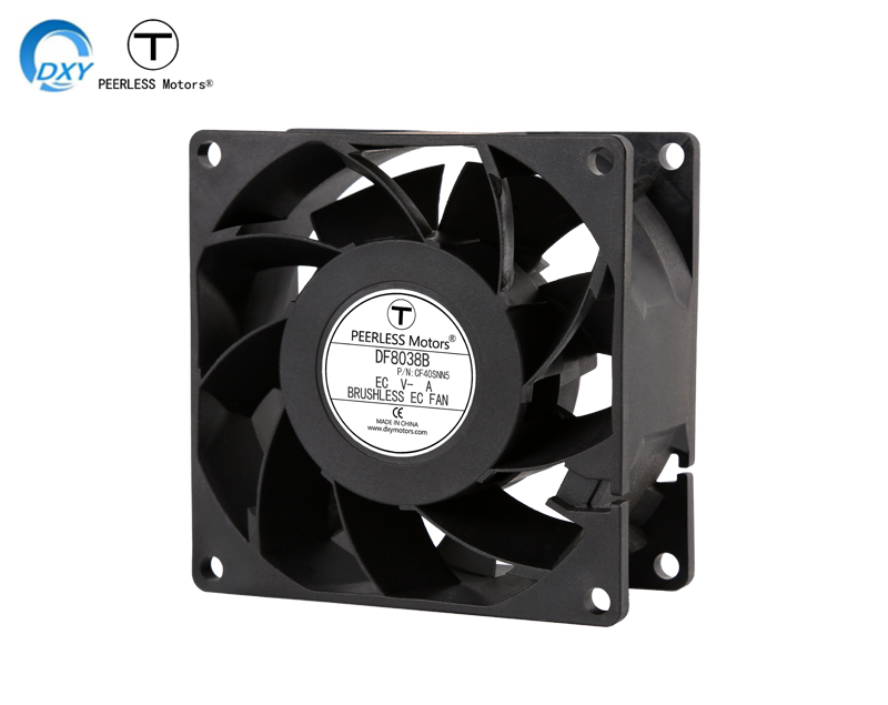 特性:8038EC交流散热风扇一体化框叶,优化风道,风量更大,噪音更低,同事采用交流转直流EC无刷电机,使用更高效更节能